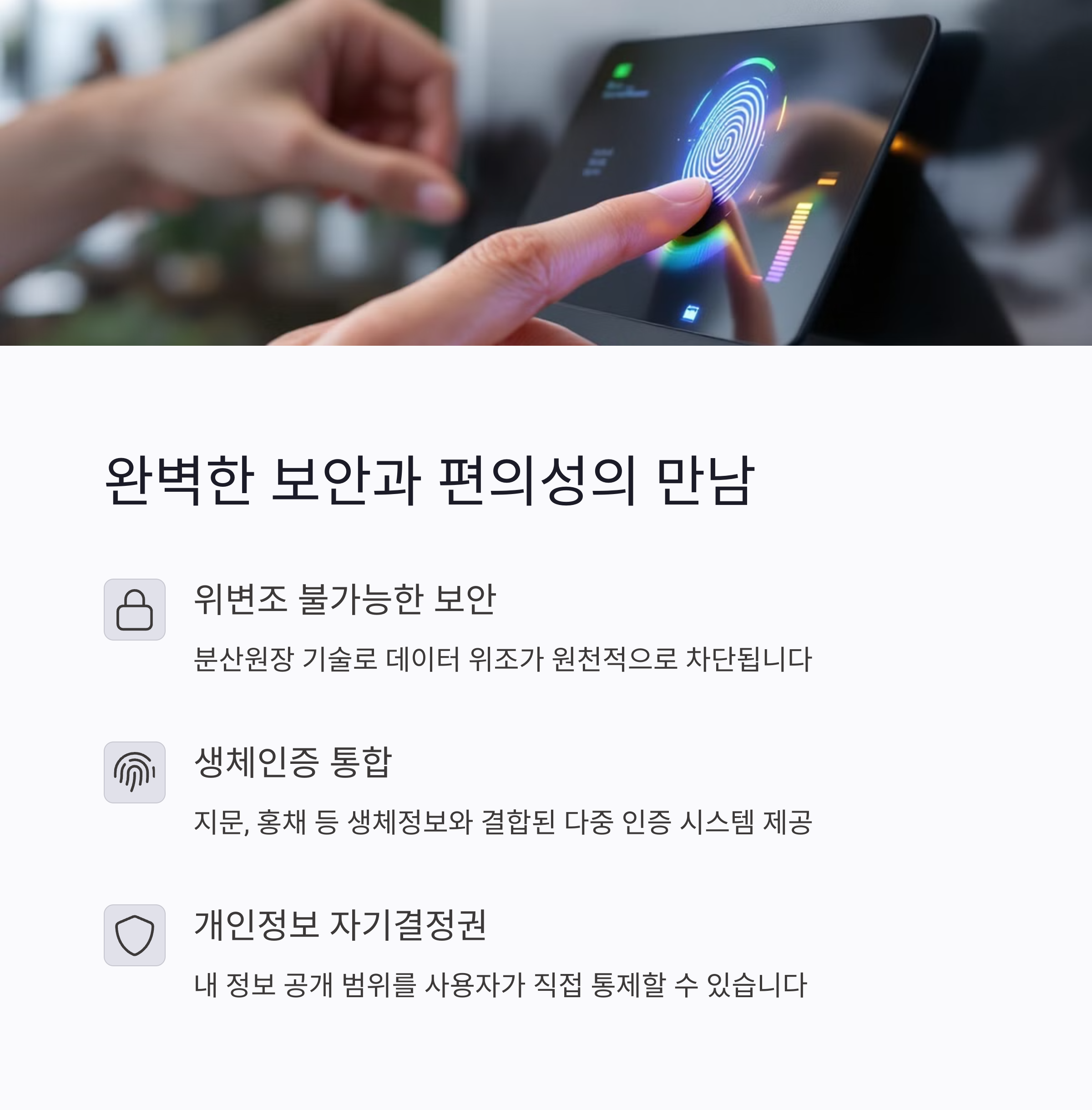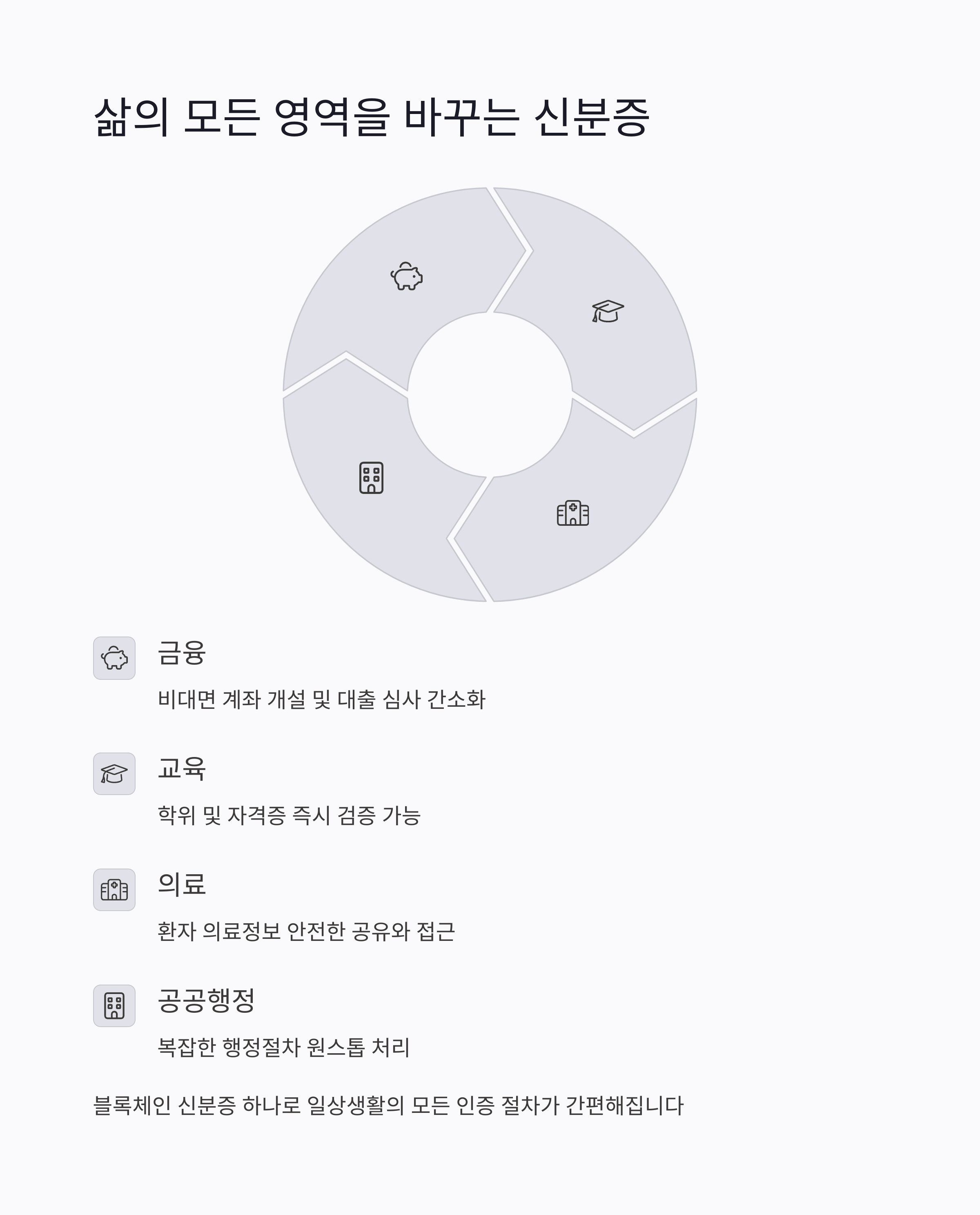 | 모바일 운전면허증, 학생증 도입 | 출입 인증, 온라인 투표 시스템 | 탈중앙화된 데이터 신뢰 구조 |