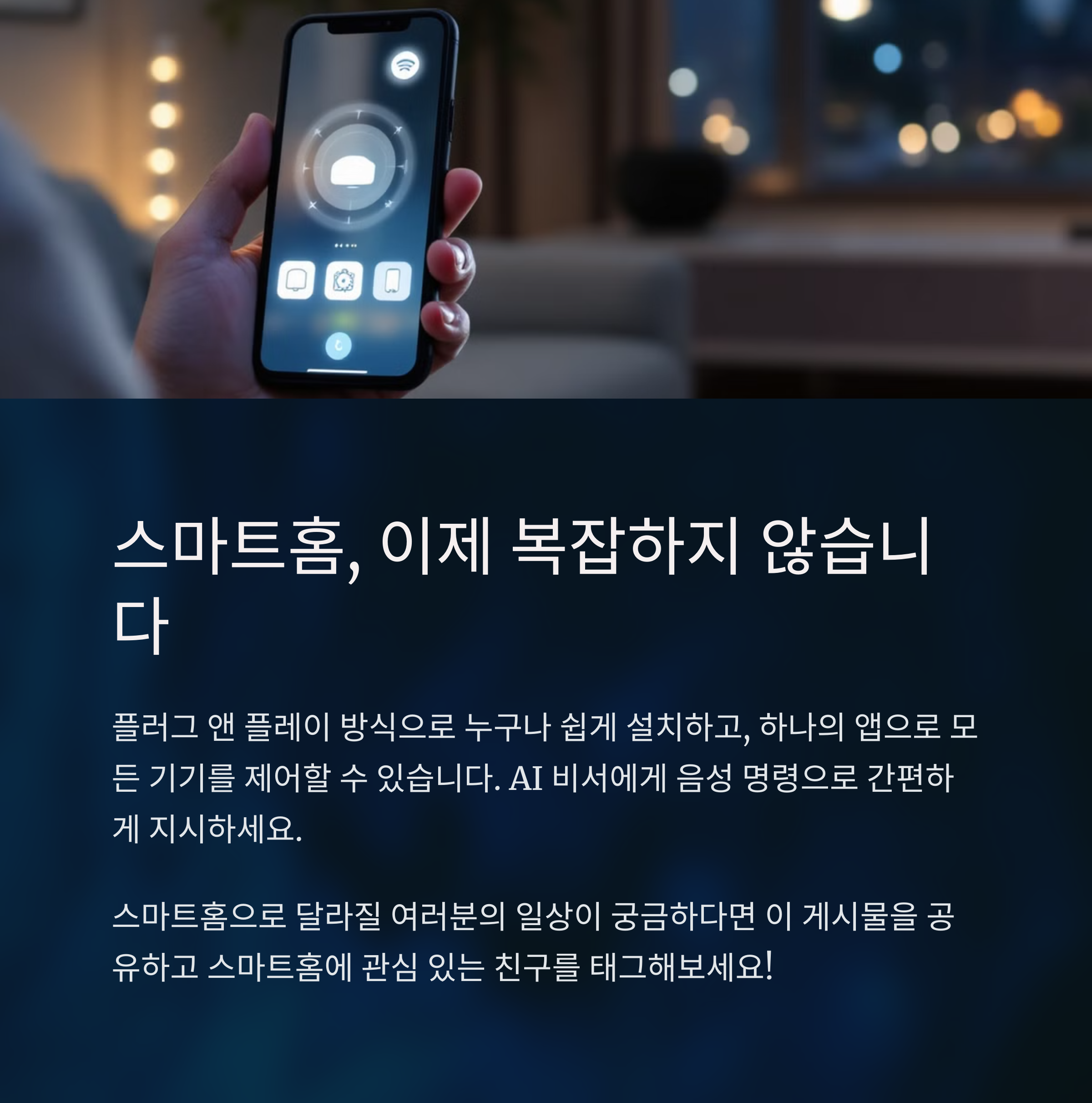 | 음성·앱 연동 | 스마트폰이나 AI 스피커로 집 안 모든 걸 제어할 수 있어요. |