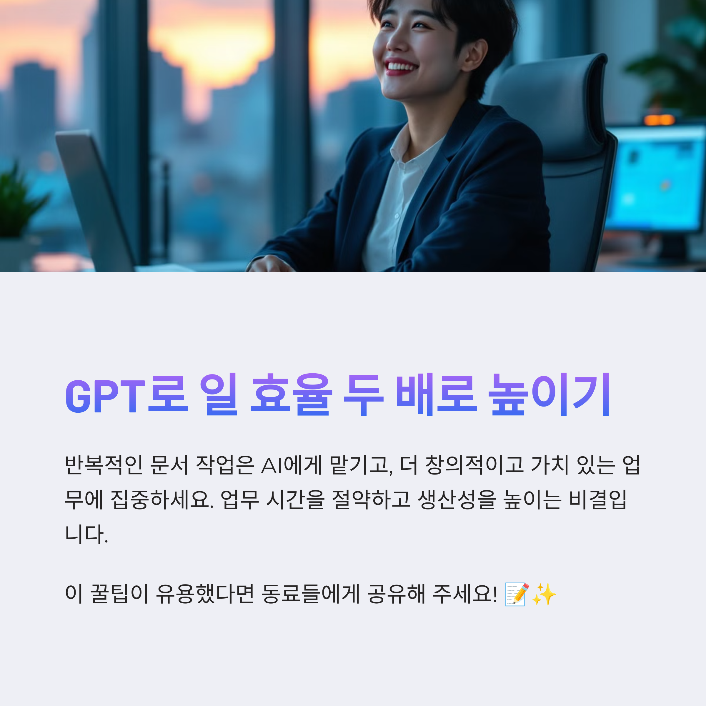 직장에서 GPT를 어떻게 활용하고 계신가요? 도움이 되었던 활용법이나 꿀팁이 있다면 댓글로 공유해주세요! 실무자 간의 정보 공유는 언제나 환영입니다.