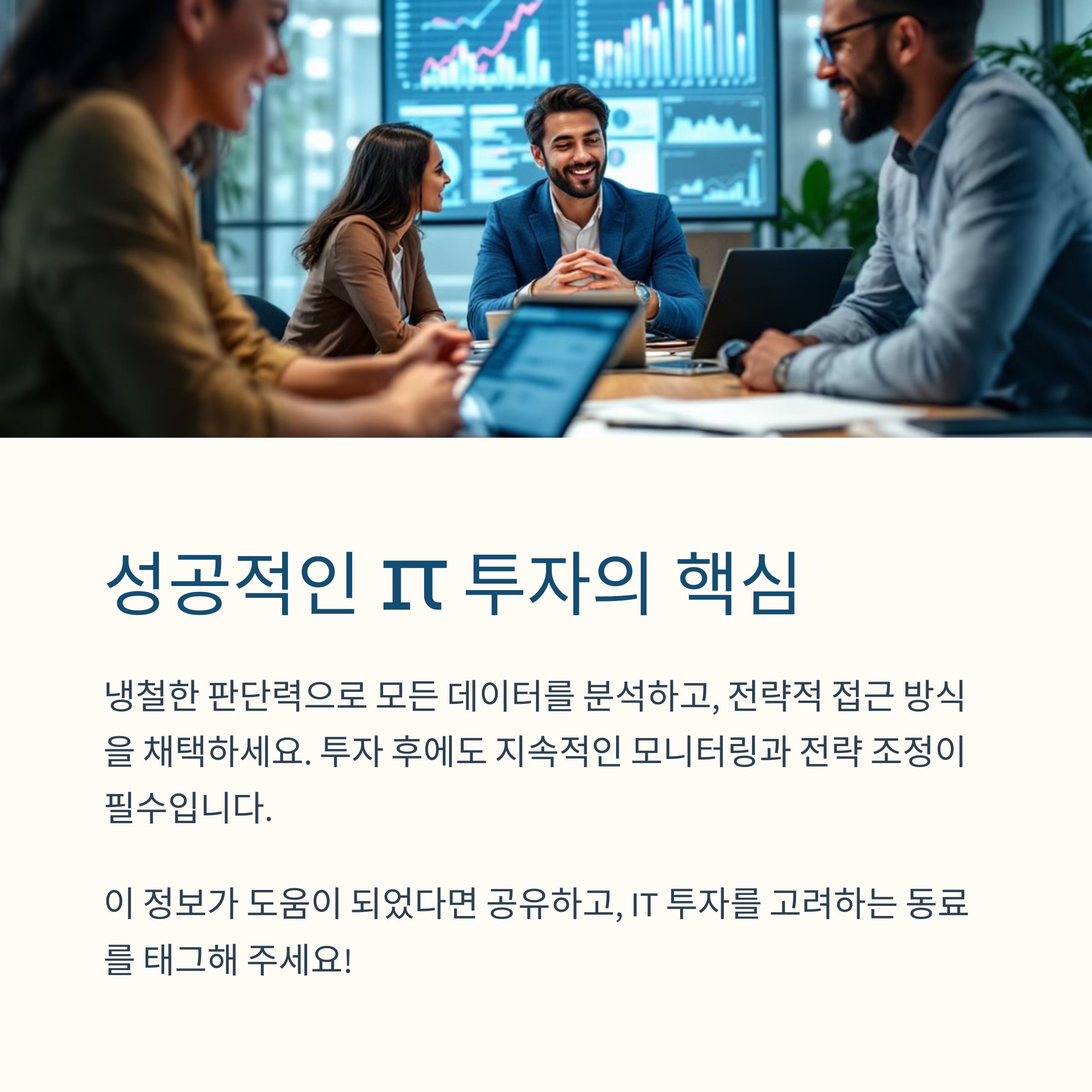 IT 신기술은 언제나 기회이자 도전입니다. 그러나 그 안에서 성공하려면 냉철한 분석과 실현 가능성, 시장 흐름, 리스크까지 고려한 통합적 판단이 반드시 필요합니다. 오늘 소개한 기준들을 통해 투자의 방향을 한층 더 명확하게 잡아보세요. 똑똑한 판단이 미래 수익을 결정짓습니다. 기술보다 사람의 통찰력이 더 중요할 때도 있습니다.