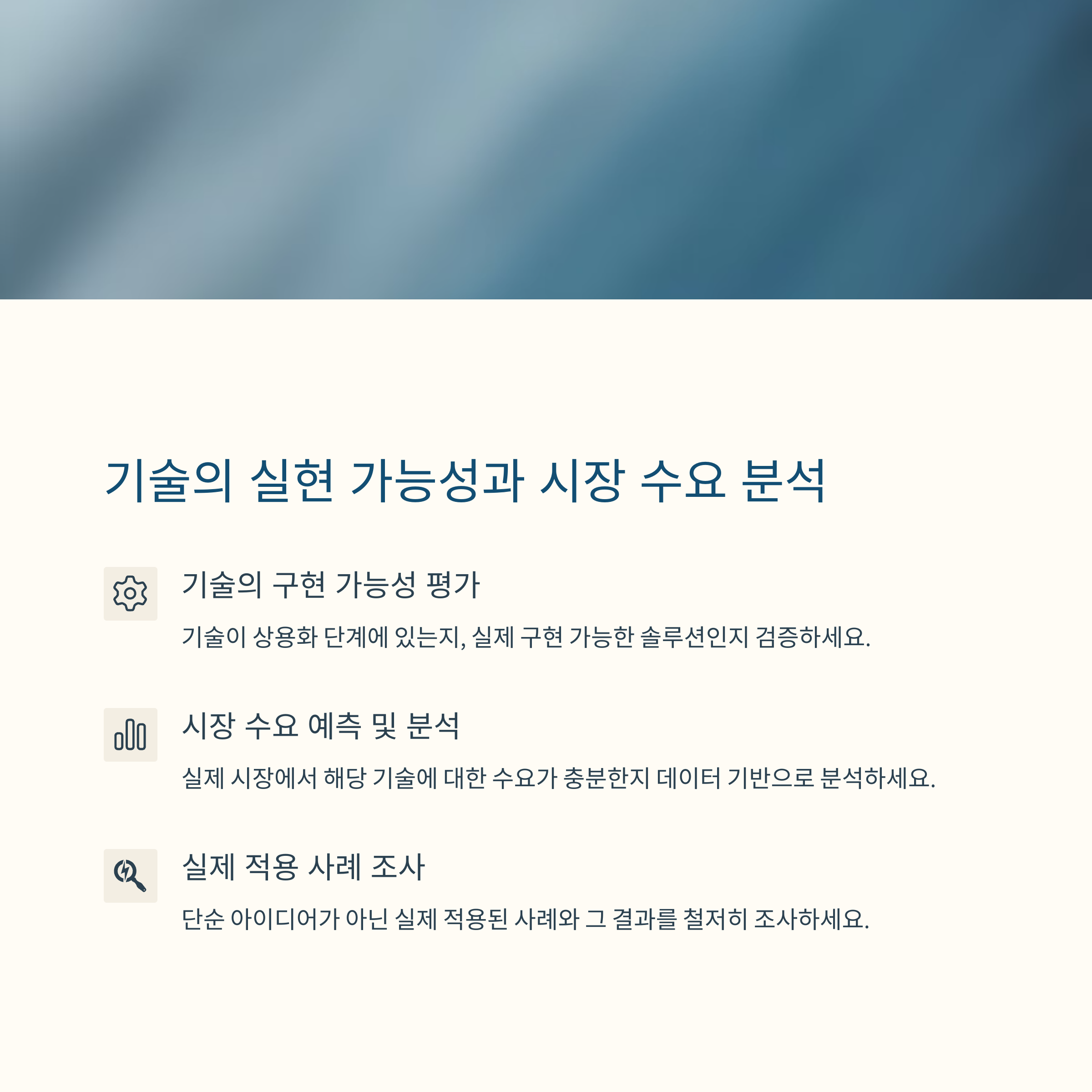 | 기술의 실현 가능성 | 아이디어가 아닌 현실로 이어질 수 있는가 |